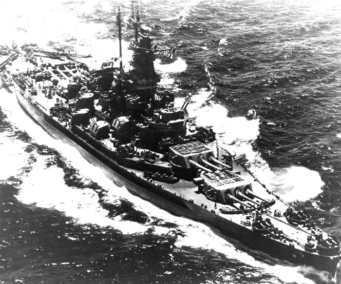 USS South Dakota (BB-57) was a battleship in the United States Navy from 1942 until 1947. The lead ship of her class, South Dakota was the third ship of the U.S. Navy to be named in honor of the 40th state. The USS South Dakota fought gallantly in World War II sea battles in both the Atlantic and Pacific theaters. Most warships are built for an active career of 20 or 30 years. The USS South Dakota was in commission less than five. She was awarded 13 Battlestars in that short lifetime and covered herself with more honors and glory than most other ships realize in much longer periods of service.